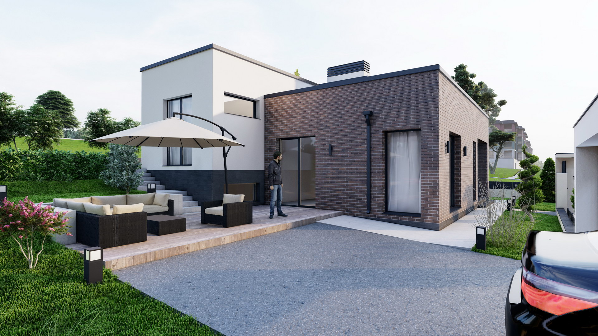 Clean lines, split level, panoramic windows affording beautiful views of the natural surroundings, a single architectural concept for all the houses, integrated solar panels, all create a wonderful atmosphere of comfort and style.