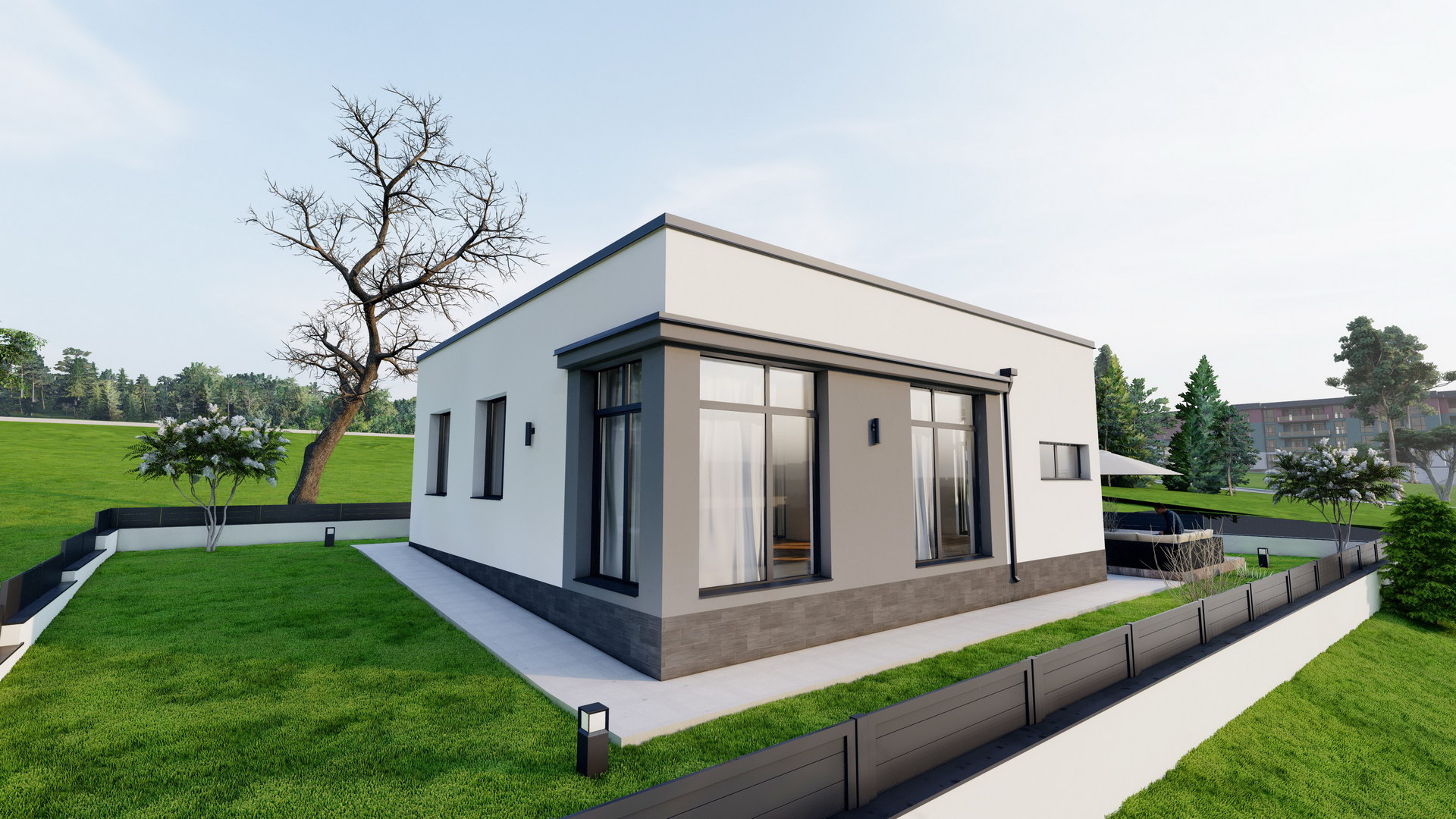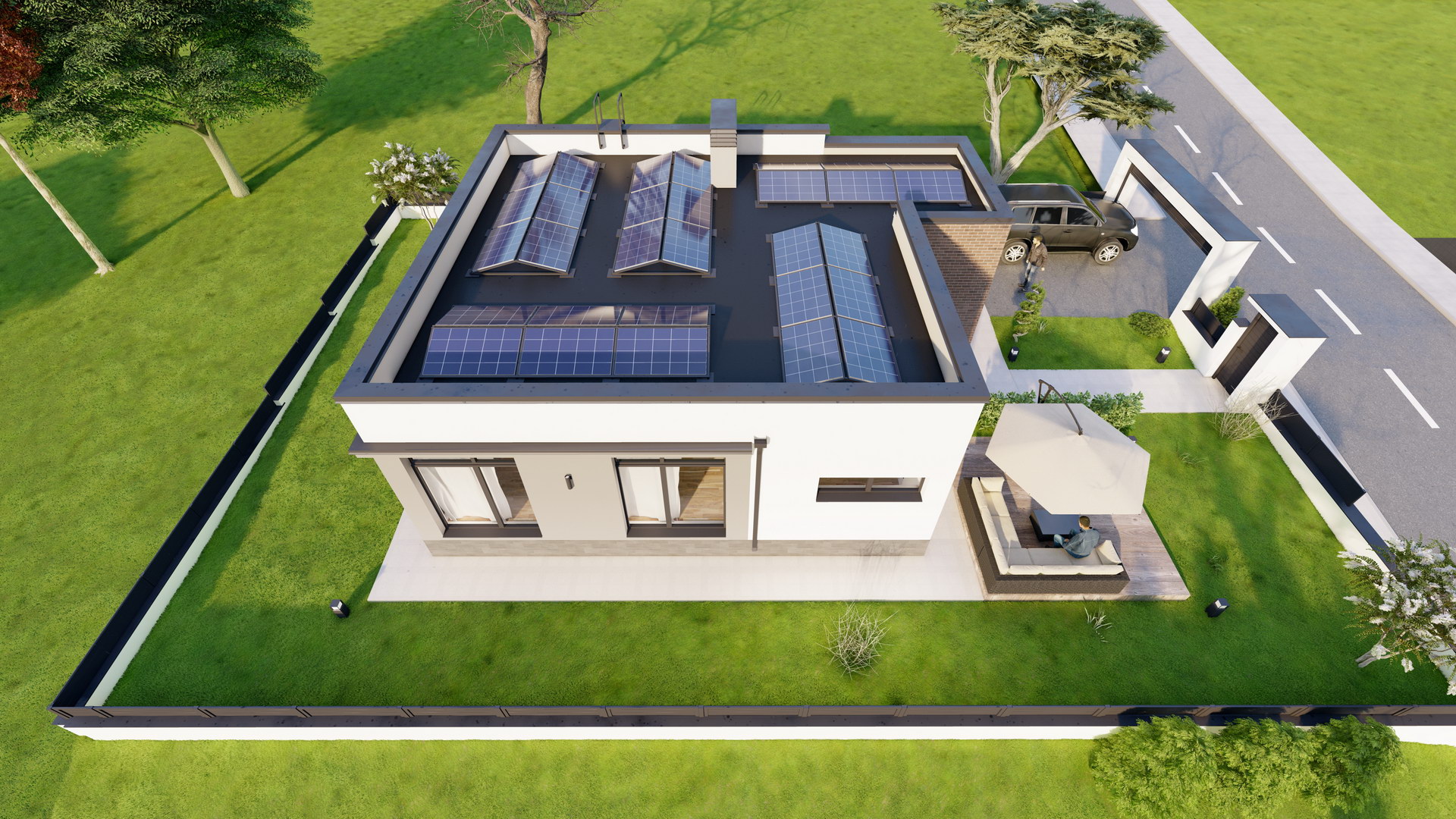 Clean lines, split level, panoramic windows affording beautiful views of the natural surroundings, a single architectural concept for all the houses, integrated solar panels, all create a wonderful atmosphere of comfort and style.